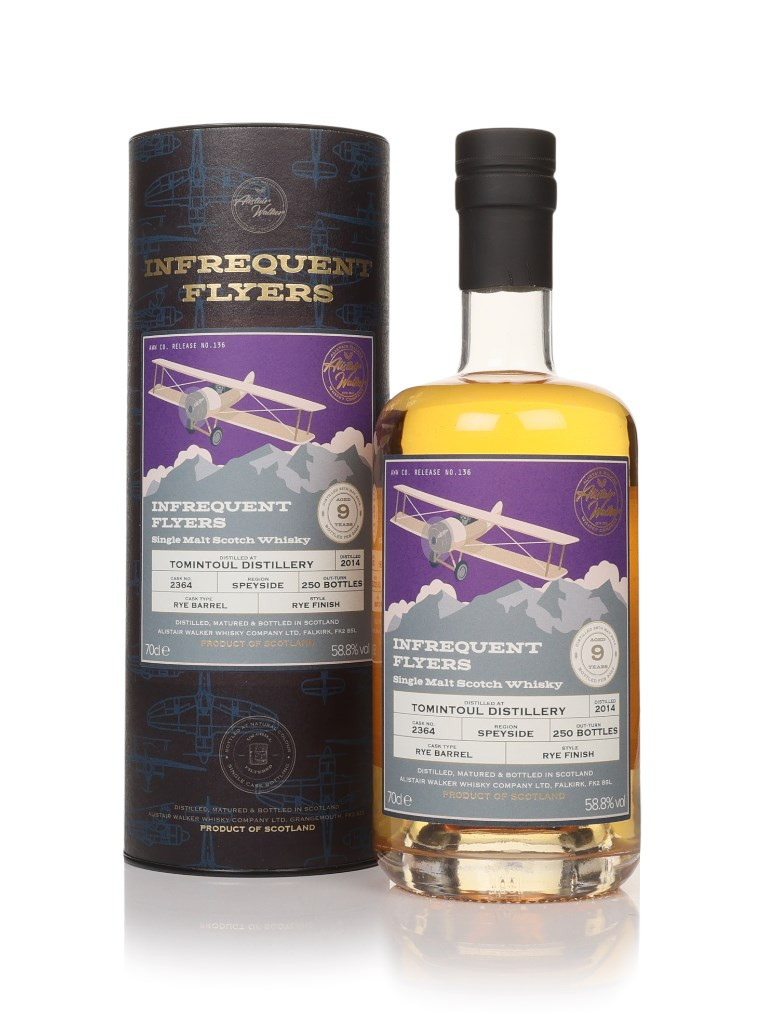 This nine-year-old single malt from Tomintoul was distilled in 2014 and treated to a finish in a rye barrel before it was bottled in 2024. A total of 250 bottles join the Infrequent Flyers collection from independent bottler Alistair Walker.