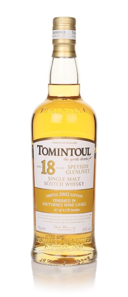 A tasty Tomintoul here, distilled back in 2002! This expression was initially set aside to age in ex-bourbon barrels, but was eventually given a new home in casks that previously held Sauternes from Chateau Piada in France. Sauternes is a type of sweet wine, known for its... Well, its sweetness. As such, a hearty helping of that sweetness has been imparted to this Tomintoul single malt. With its nickname being "The Gentle Dram", we reckon this additional sweetness will make for a rather fantastic tipple.