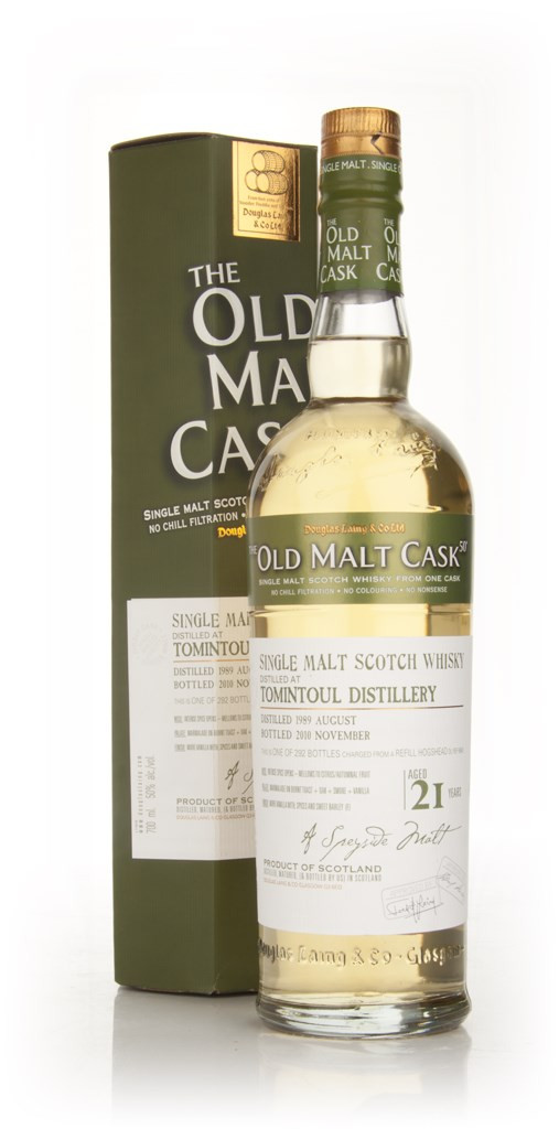 A 21 year old Tomintoul distilled in August of 1989 and aged in a refill hogshead before bottling in November of 2010 for the Old Malt Cask range. A release of 292 bottles.