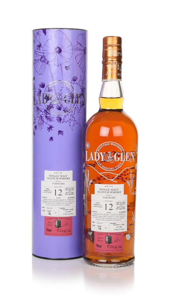 Distilled in 2011, this 12-year-old single malt from Tormore was finished for over a year in a refill Pedro Ximénez sherry octave that previously held Islay whisky. An unusual combo, imparting a fascinating array of dried fruit sweetness and soft, coastal character. Just 50 bottles join the Lady of the Glen series from Hannah Whisky Merchants.