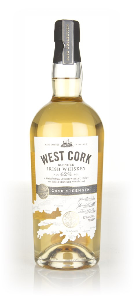 Cask strength blended Irish whiskey from West Cork, which has been allowed to marry in first-fill bourbon barrels. Rather punchy, full-bodied stuff.