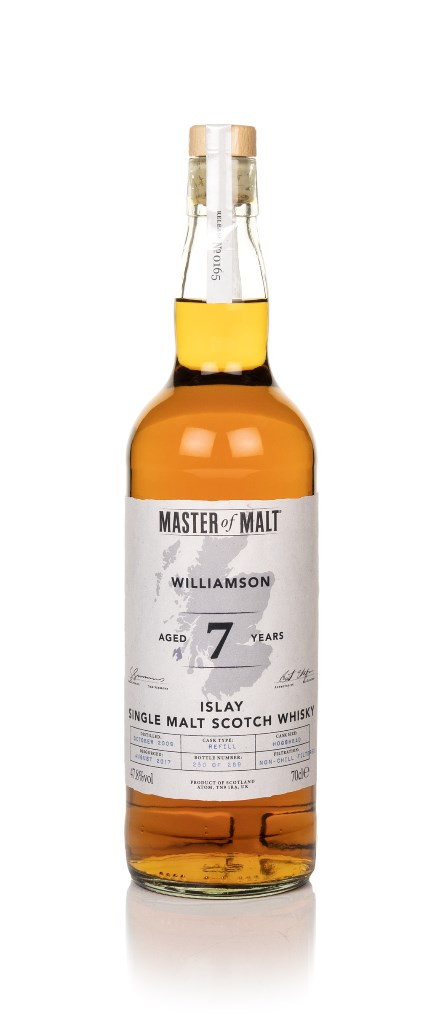 This little gem joins our exclusive Master of Malt collection and hails from an undisclosed Islay distillery. Matured for seven years and released under the Williamson name, Islay aficionados and Scotch whisky sleuths ought to have fun discussing the origin of this superbly spicy, peaty single malt.