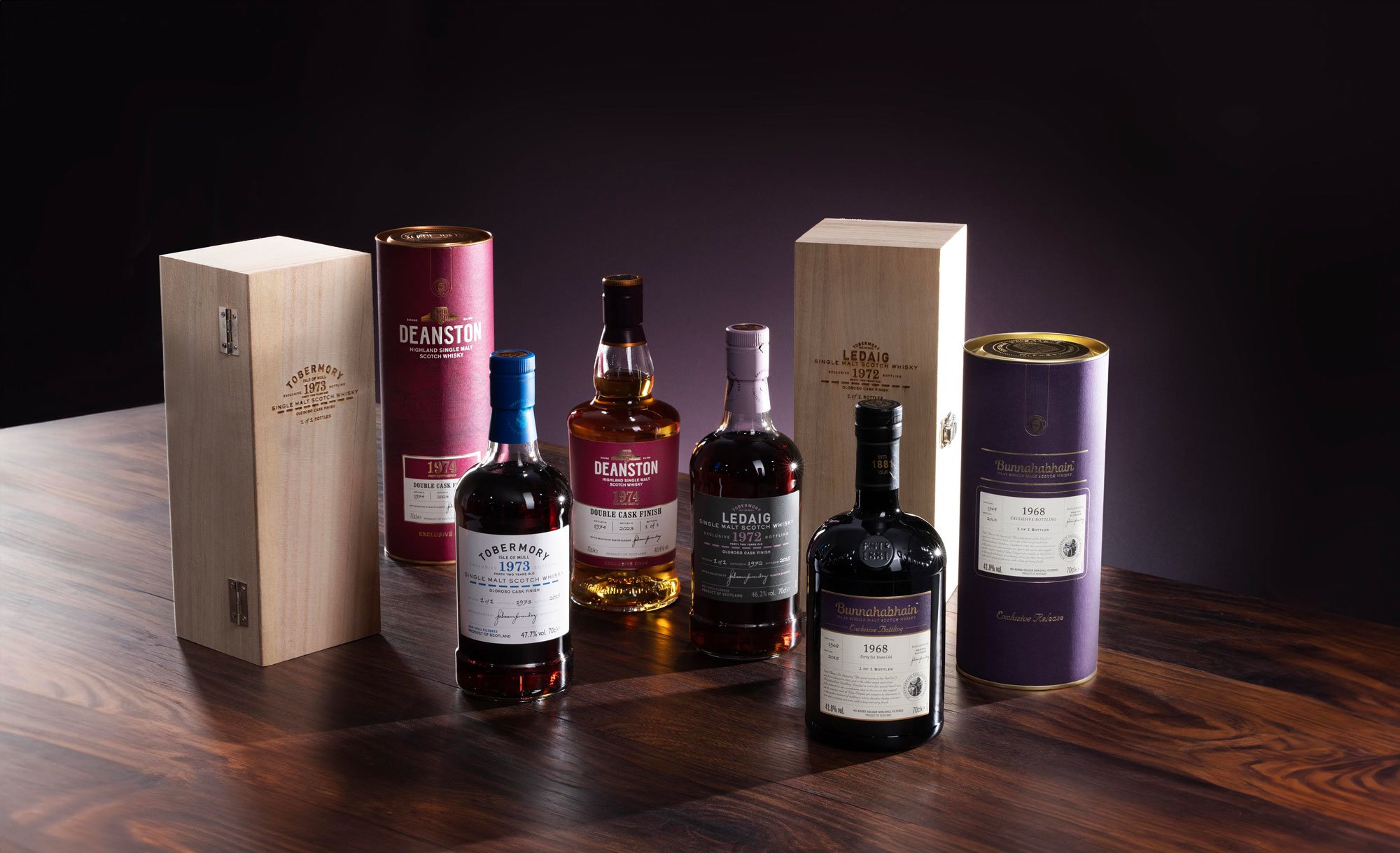 Four unique – 1 of 1 – bottles of Bunnahabhain, Deanston, Ledaig, and Tobermory whisky all over 40 years old are up for grabs.