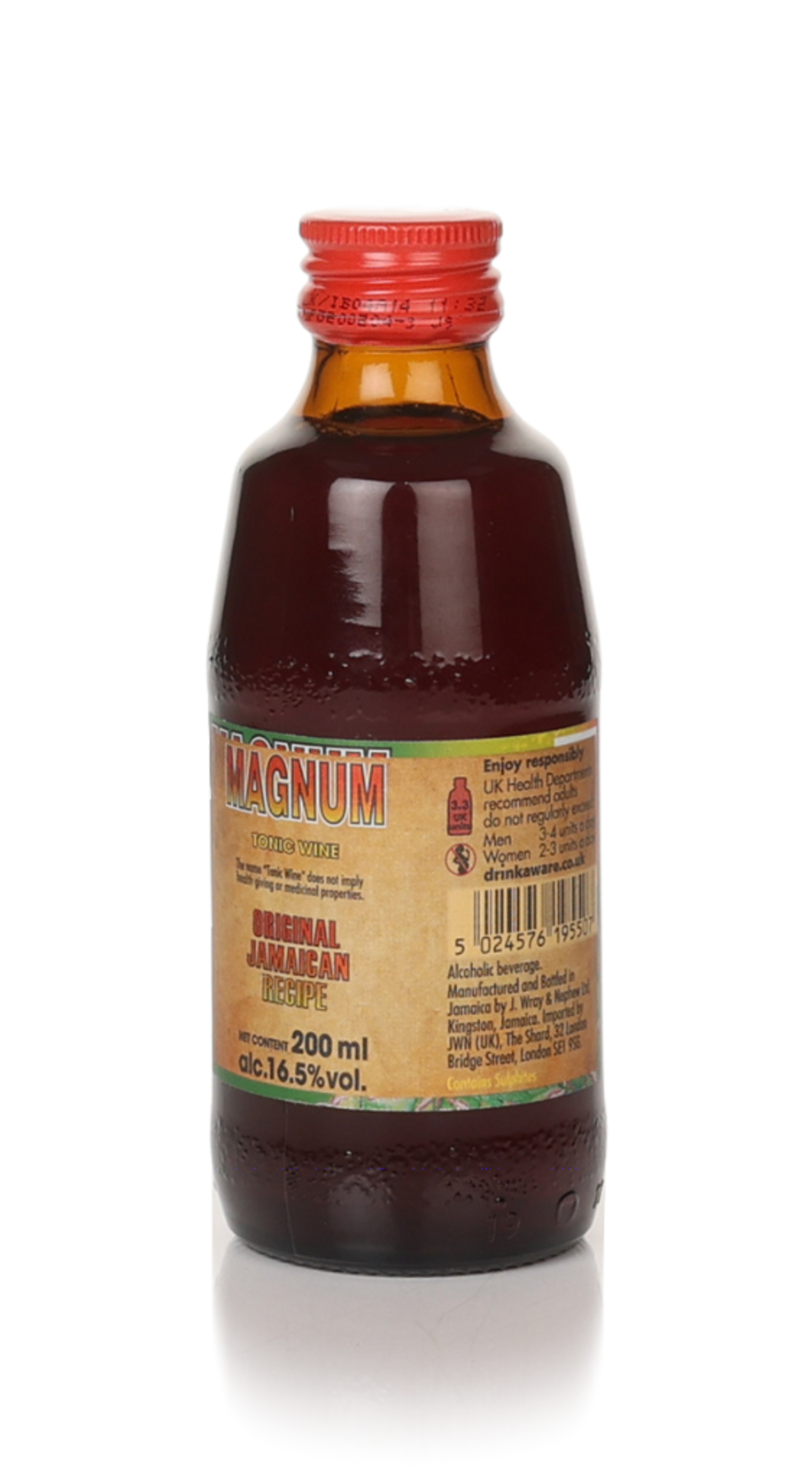 An original Jamaican recipe, this Magnum Tonic Wine is a fortified drink bottled at 16.5% ABV with a distinctive cherry flavor. The small bottle was originally introduced to Jamaica's dancehall scene back in 1999 and has been iconic ever since. You can sip it or enjoy it straight from the bottle, just note that the name Tonic Wine does not imply health-giving or medicinal properties.